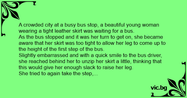 One day, at a bus stop there was a girl who was wearing a skintight miniskirt. When the bus arrived and it was her turn to get on, she realized that her skirt was so tight she couldn’t get her foot...