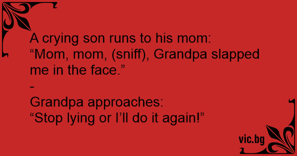 “Mom, mom, (sniff), Grandpa slapped me in the face.”