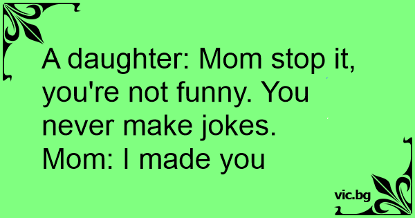 A daughter: Mom stop it, you're not funny. You never make jokes.