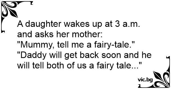 Córeczka budzi sie o trzeciej w nocy i mówi: - Mamo, opowiedz mi bajkę. - Zaraz wróci tatuś i opowie nam obu...