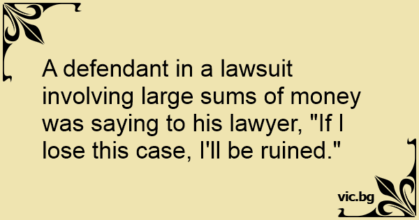 A defendant in a lawsuit involving large sums of money was saying to his lawyer, "If I lose this case, I'll be ruined."