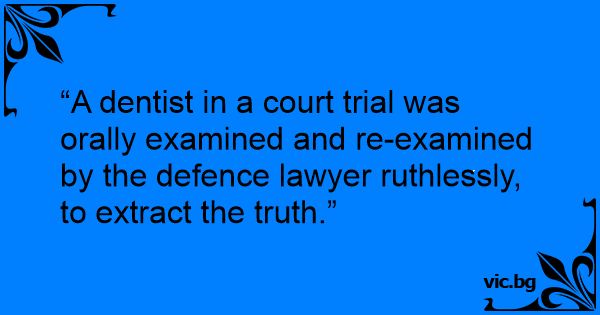 “A dentist in a court trial was оrаlly examined and re-examined by the defence lawyer ruthlessly, to extract the truth.”