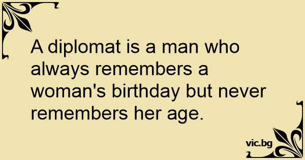 A diplomat is a man who always remembers a woman's birthday but never remembers her age.