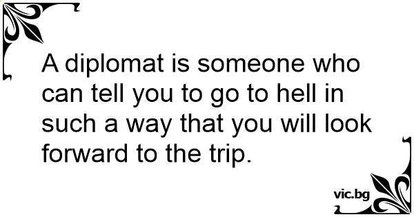 A diplomat is someone who can tell you to go to hеll in such a way that you will look forward to the trip.
