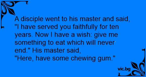 "I have served you faithfully for ten years. Now I have a wish: give me something to eat which will never end." His master said,