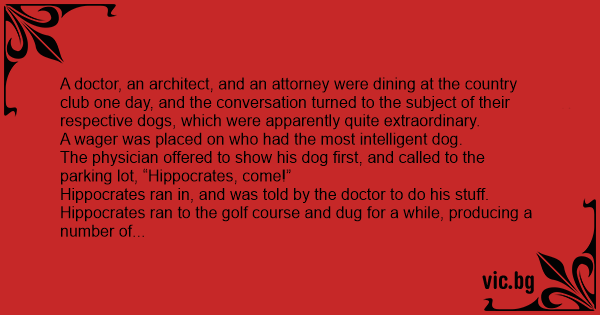 A doctor, an architect, and an attorney were dining at the country club one day, and the conversation turned to the subject of their respective dogs, which were apparently quite extraordinary.