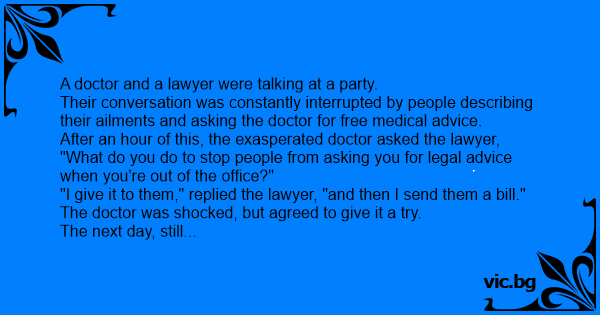 A doctor and a lawyer were talking at a party.