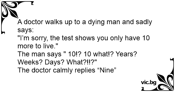 The man says " 10!? 10 what!? Years? Weeks? Days? What?!!?"