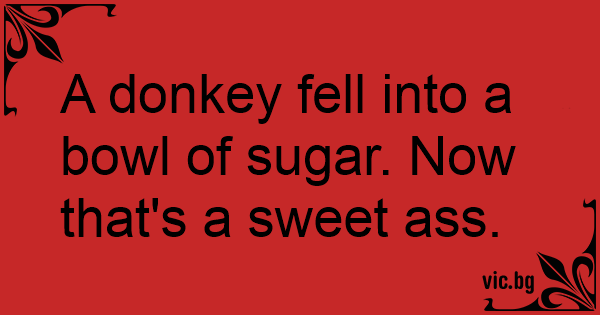 A donkey fell into a bowl of sugar. Now that's a sweet аss.