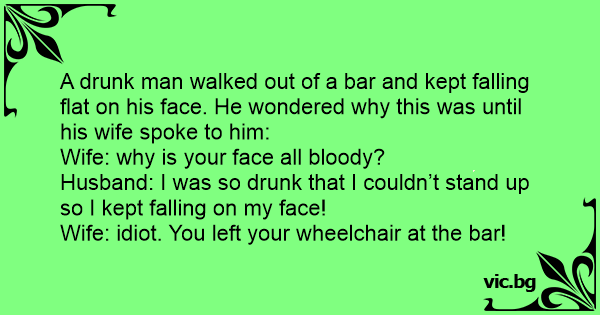 Husband: I was so drunк that I couldn’t stand up so I kept falling on my face!