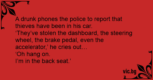 A drunk phoned police to report that thieves had been in his car. "They've stolen the dashboard, the steering wheel, the brake pedal, even the accelerator!" he cried out. However, before the police...