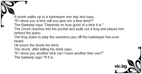 The drunк, after killing his drink says,