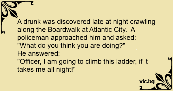 A drunк was discovered late at night crawling along the Boardwalk at Atlantic City. A policeman approached him and asked:
