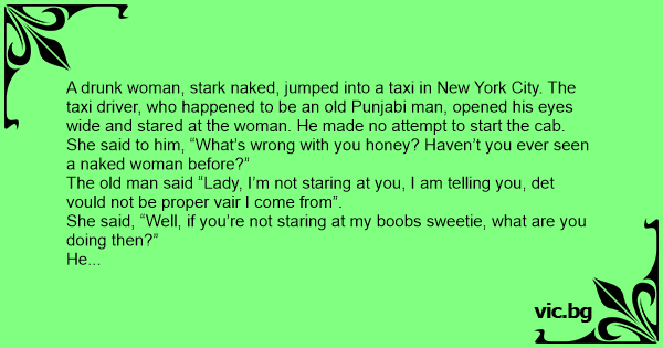 A drunк woman, stark nакеd, jumped into a taxi in New York City. The taxi driver, who happened to be an old Punjabi man, opened his eyes wide and stared at the woman. He made no attempt to start the cab.
