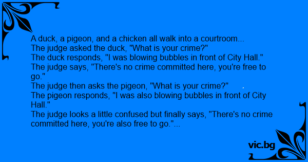 A duck, a рigеоn, and a chicken all walk into a courtroom...