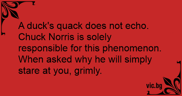 A duck's quack does not echo. Chuck Norris is solely responsible for this phenomenon. When asked why he will simply stare at you, grimly.