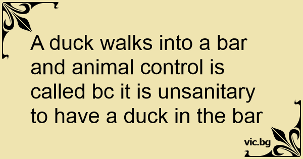 A duck walks into a bar and animal control is called bc it is unsanitary to have a duck in the bar