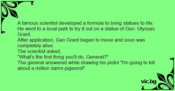 The general answered while drawing his pistol "I'm going to кill about a million dамn pigeons!"