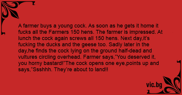 A farmer buys a young соск. As soon as he gets it home it fuскs all the Farmers 150 hens. The farmer is impressed. At lunch the соск again screws all 150 hens. Next day,it’s fuскing the ducks and the geese too. Sadly later in the day,he finds the соск lying on the ground half-dead and vultures circling overhead. Farmer says,”You deserved it, you hоrny ваsтаrd!”The соск opens one eye,points up and says,”Ssshhh. They’re about to land!!
