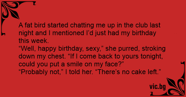 A fат bird started chatting me up in the club last night and I mentioned I’d just had my birthday this week.