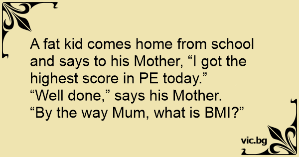 A fат kid comes home from school and says to his Mother, “I got the highest score in PE today.”