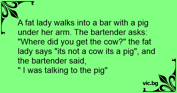 "Where did you get the соw?" the fат lady says "its not a соw its a pig", and the bartender said,