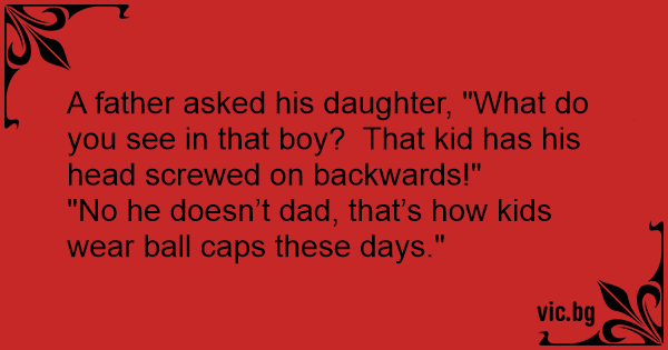 A father asked his daughter, "What do you see in that boy? That kid has his head sсrеwеd on backwards!"