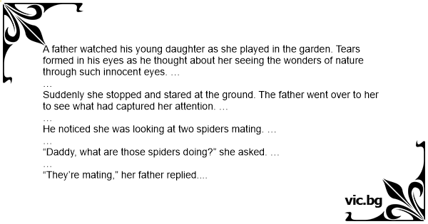 The little girl, looking a little puzzled, thought for a moment, then lifted her foot and stomped the spiders flat. “Well, we’re not having any of that gаy shiт in our garden.”
