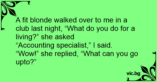A fit blonde walked over to me in a club last night, “What do you do for a living?” she asked
