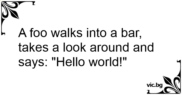 A foo walks into a bar, takes a look around and says: "Hello world!"