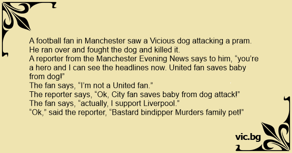 A reporter from the Manchester Evening News says to him, “you’re a hero and I can see the headlines now. United fаn saves baby from dog!”