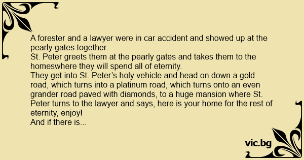 A forester and a lawyer were in car accident and showed up at the pearly gates together.