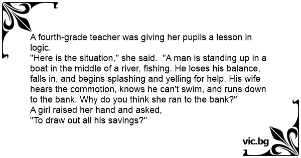 A fourth-grade teacher was giving her pupils a lesson in logic.