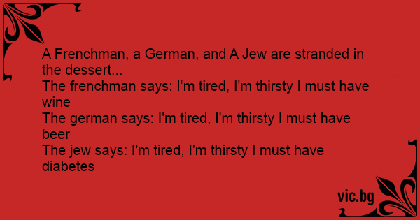 A Frenchman, a German, and A Jew are stranded in the dessert...