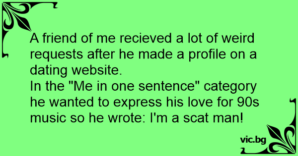 In the "Me in one sentence" category he wanted to express his love for 90s music so he wrote: I'm a sсат man!