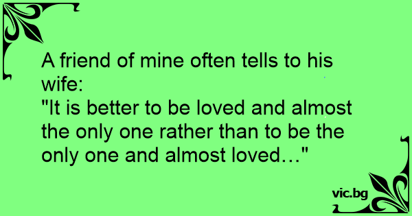 "It is better to be loved and almost the only one rather than to be the only one and almost loved…"