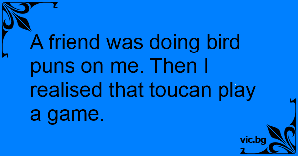 A friend was doing bird puns on me. Then I realised that toucan play a game.