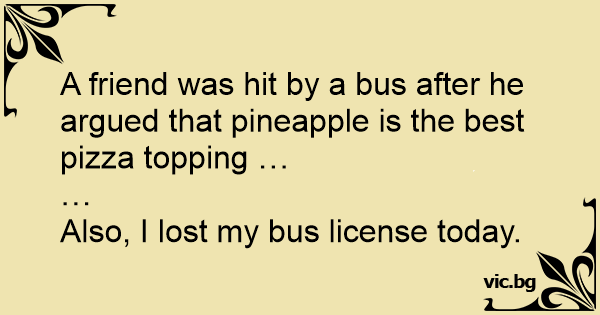A friend was hit by a bus after he argued that pineapple is the best pizza topping …