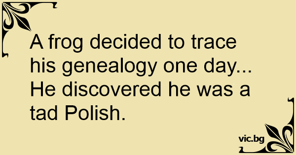 A frog decided to trace his genealogy one day...