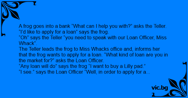 “I’d like to apply for a loan” says the frog.