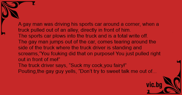 A gаy man was driving his sports car around a corner, when a truck pulled out of an alley, directly in front of him.