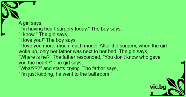 "I love you more, much much more!" After the surgery, when the girl woke up, only her father was next to her bed. The girl says,