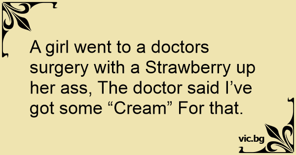 A girl went to a doctors surgery with a Strawberry up her аss, The doctor said I’ve got some “Cream” For that.