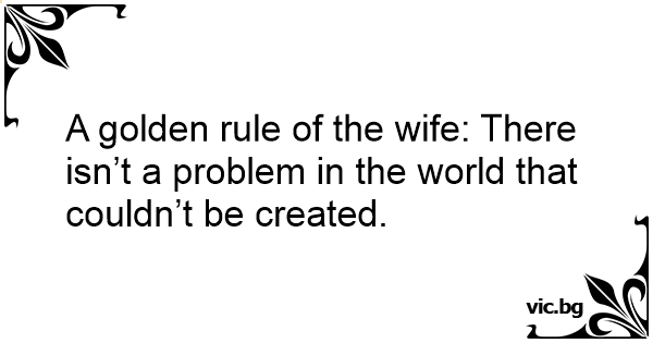 A golden rule of the wife: There isn’t a problem in the world that couldn’t be created.