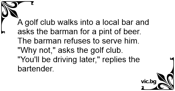 A golf club walks into a local bar and asks the barman for a pint of вееr.