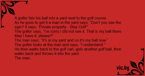 As he goes to get it a man in the yard says, “Don’t you see the sign? It says, ‘Private property - Stay Out!'”