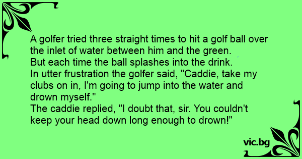 The caddie replied, "I doubt that, sir. You couldn't keep your head down long enough to drown!"