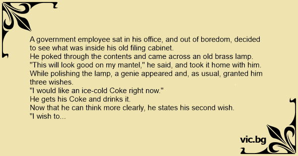 While polishing the lamp, a genie appeared and, as usual, granted him three wishes.