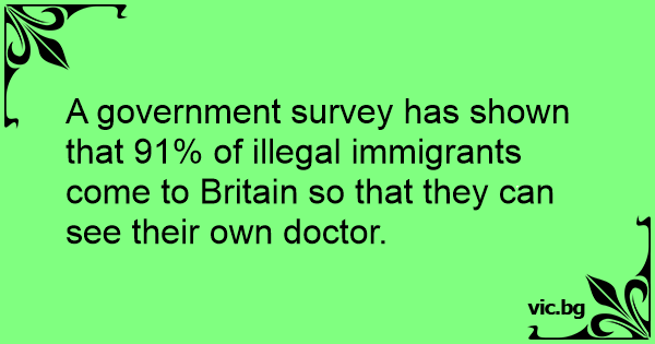 A government survey has shown that 91% of illegal immigrants come to Britain so that they can see their own doctor.