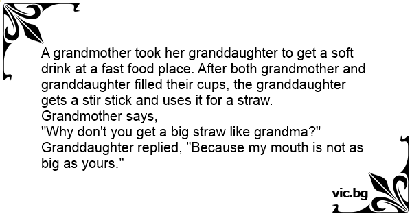 Granddaughter replied, "Because my mouth is not as big as yours."